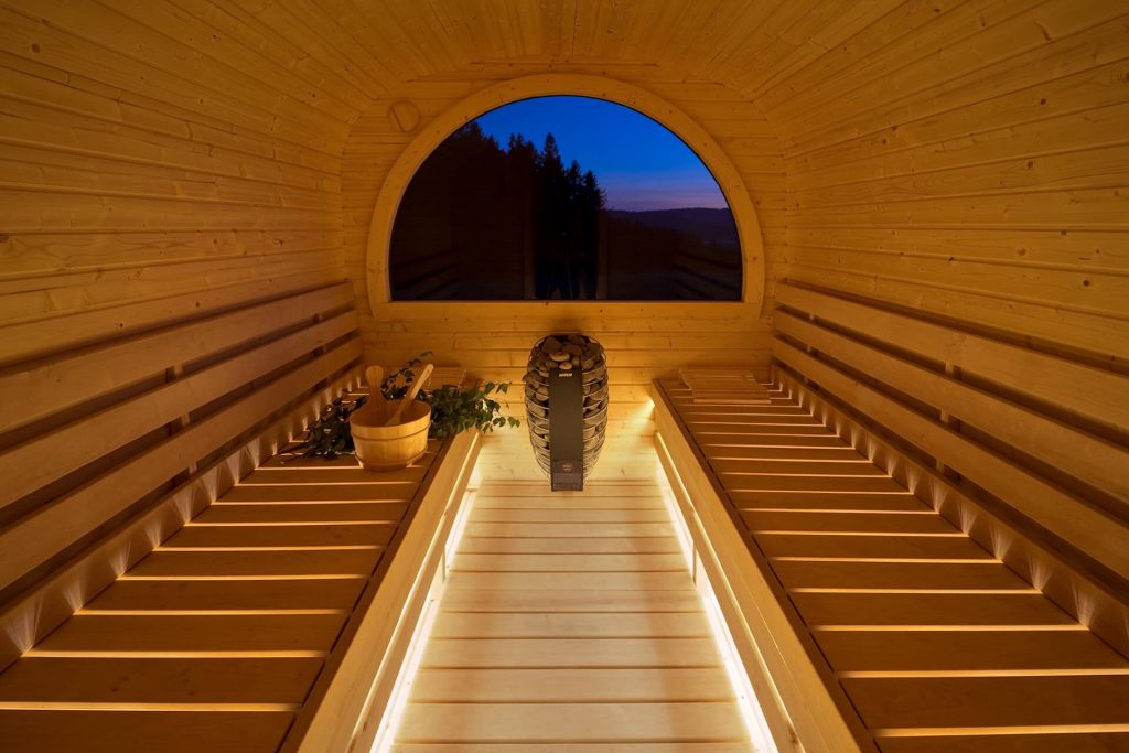 - Vyhřátá sauna na 80°C – teplotu si však můžete upravit sami